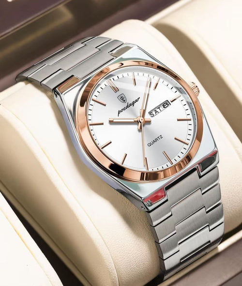 ⚪✨ Arctic Silver (The Purist): Clean, sharp, and luminous. A bright, sophisticated dial that highlights the rose gold accents for a look of effortless luxury. Finished with an iconic gold bezel.
